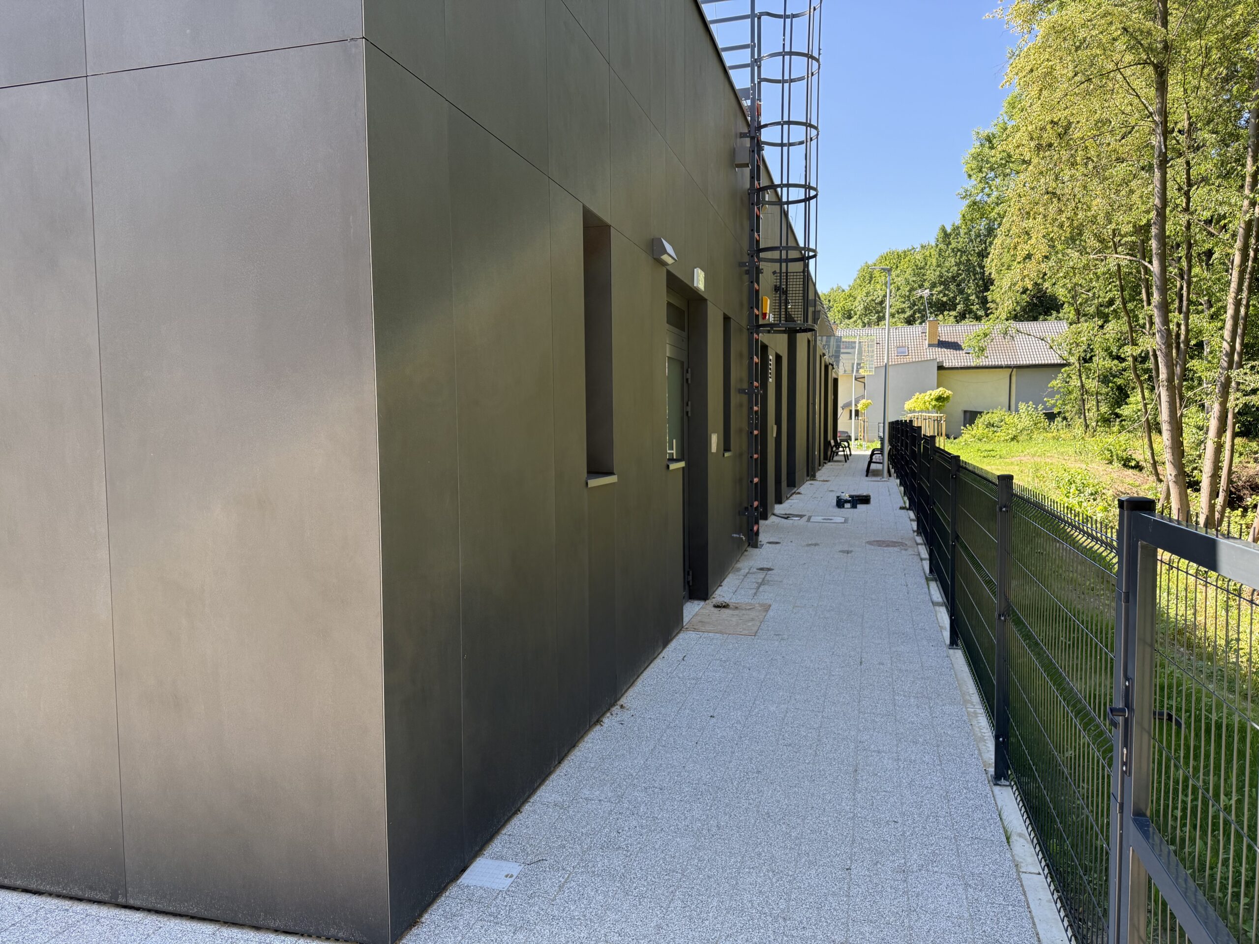 Materiały jak Laminam, Fundermax czy Equitone zachowują właściwości przez dziesiątki lat. Gwarancje producentów potwierdzają trwałość kolorów i odporność. Przez kilkadziesiąt lat elewacja nie wymaga malowania ani regularnej konserwacji.